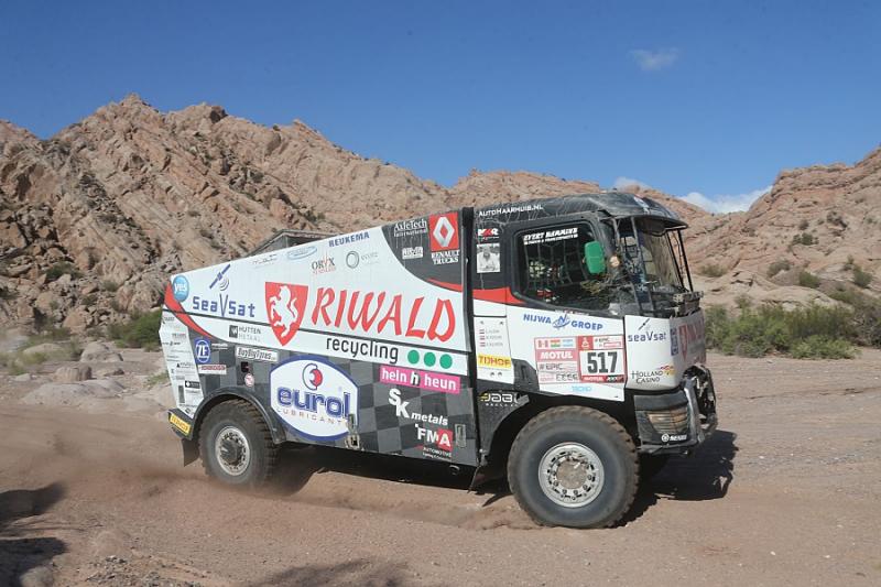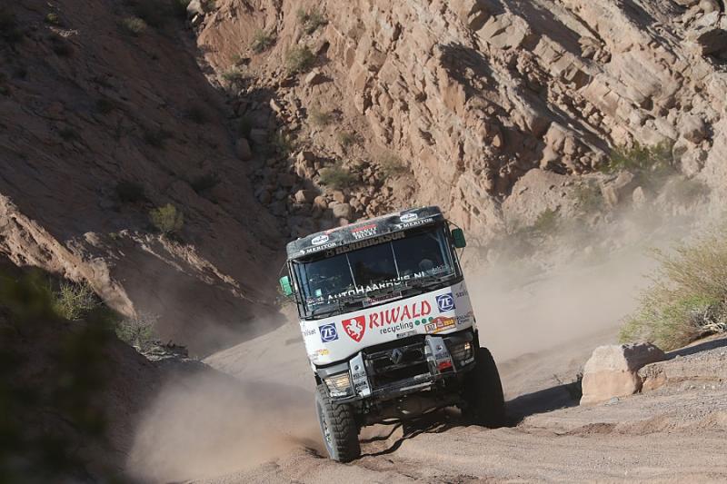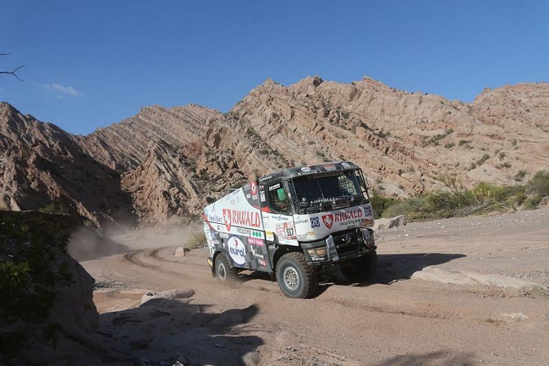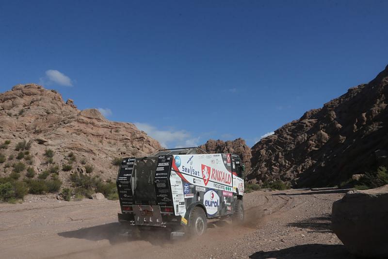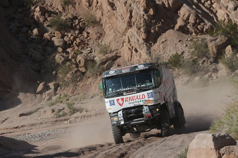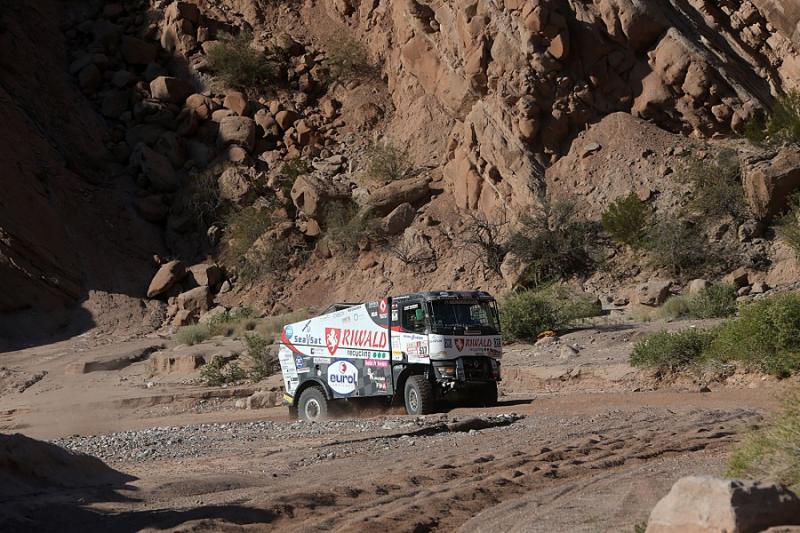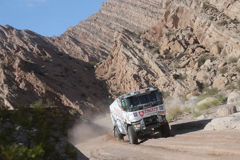 During the 12th racing day the teams of Dakar Rally had to handle a longest timed stage. Russian Nikolajev returned to the overall lead after a day spent lower in the ranking. But his lead is just a single second. Gerd Huzink, riding a north Bohemian Renault Trucks special already aimed to the podium, but he was blocked by a punctured tire.