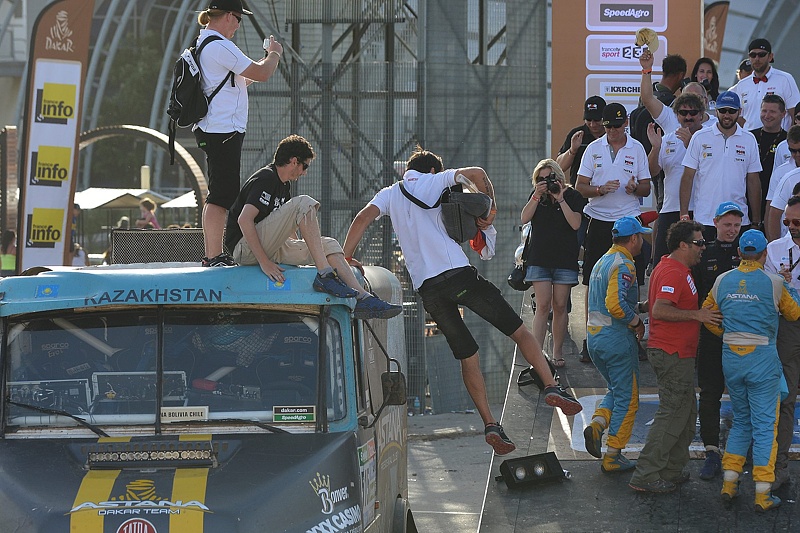 Overall ranking: 1. Mardeev (RUS) Kamaz 42:22:01, 2. Nikolaev (RUS) Kamaz +13:52, 3. Karginov (RUS) Kamaz +51:00, 4. Loprais (CZE) MAN +1:56:37, 5. Sotnikov (RUS) Kamaz +2:24:32, 7. Kolomý (CZE) Tatra + 4:07:29, 14. Vrátný (CZE) Tatra +9:55:54, 17. van den Brink (NED) Renault Trucks +11:07:33, 19. Szustkowski (POL) Tatra +12:42:05, 22. Ardavichus/Kozlovský (KAZ/CZE) Tatra +17:44:05, 31. de Baar (NED) Renault Trucks +29:05:09.