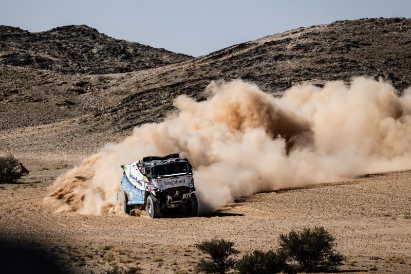 Alo Duwadimi, January 14, 2024 - Gert Huzink's journey in the Dakar Rally's longest stage (873 kilometers) on Sunday had its highs and lows, concluding with a mixed bag of experiences for the truck driver of the Jongbloed Dakar Team in the Saudi bivouac in Al Duwadimi.