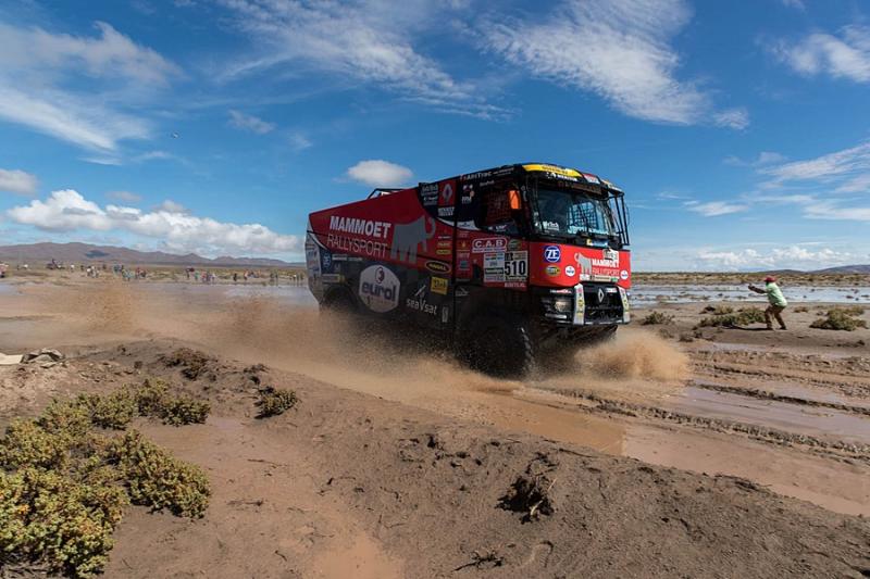 The stage stirred up the overall ranking as well. The Dutch de Rooy lost his position in the lead when two Kamaz trucks overtook him and the Russian Sotnikov replaced him on first rank. However, Pascal de Baar returned to the elite five and falls behind the leader by 45 minutes. The unlucky former leader Martin van den Brink jumped up the ranking to 38th position.