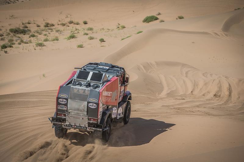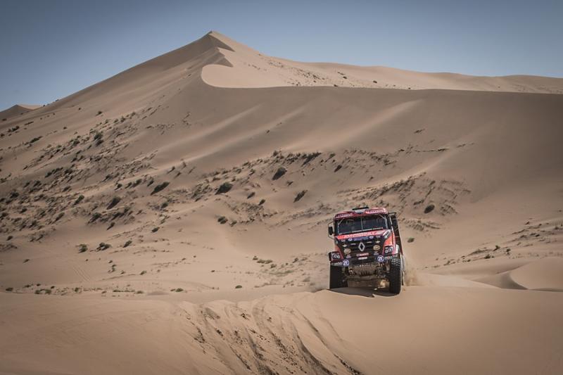 Kamaz, kamaz and a kamaz once again. The penultimate racing stage of the world‘s toughest rally was ruled over by the Russian trucks. Leg thirteen of the Silk Way Rally brought problems with electronics to the Renault Sherpa and the truck was eventually classified on sixth place with a fifteen-minute loss. The dream of victory is somewhat further away, but the overall podium standing is indeed very close.