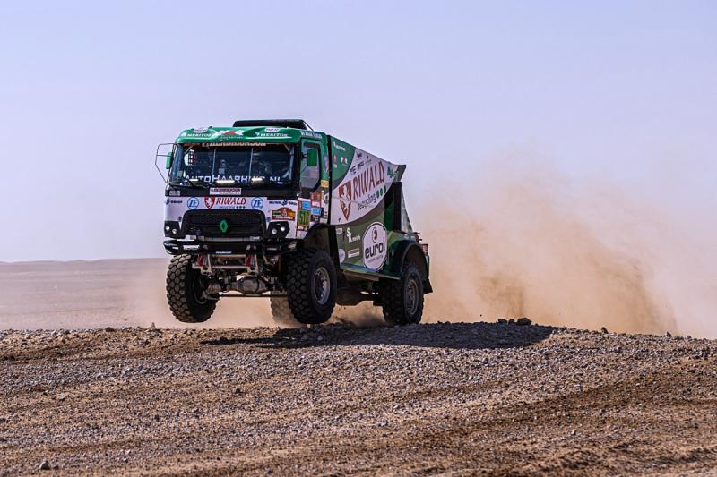Wednesday's 4th stage was the longest test of this year. The route led from Al Qaisumah to Riyadh and had 465 kilometers. These were preceded by a 200-kilometer connecting route and then another 140 km to the bivouac. Treacherous bumps made fast sections tricky. "After a few tense moments, we slowed down a bit. The route was unpredictable and accident was very close all the time" Huzink described the situation, when decided in the final part to push harder again. "The truck worked great and Pascal signaled to us that we couldn't help him at the moment. When we saw that we were on seventh place, only one minute behind fifth place, we took risk a bit and overtook Kamaz of Karginov Loprais' Tatra," said Huzink with satisfaction at the finish. Fifth time proves the speed of his hybrid special Renault C460.