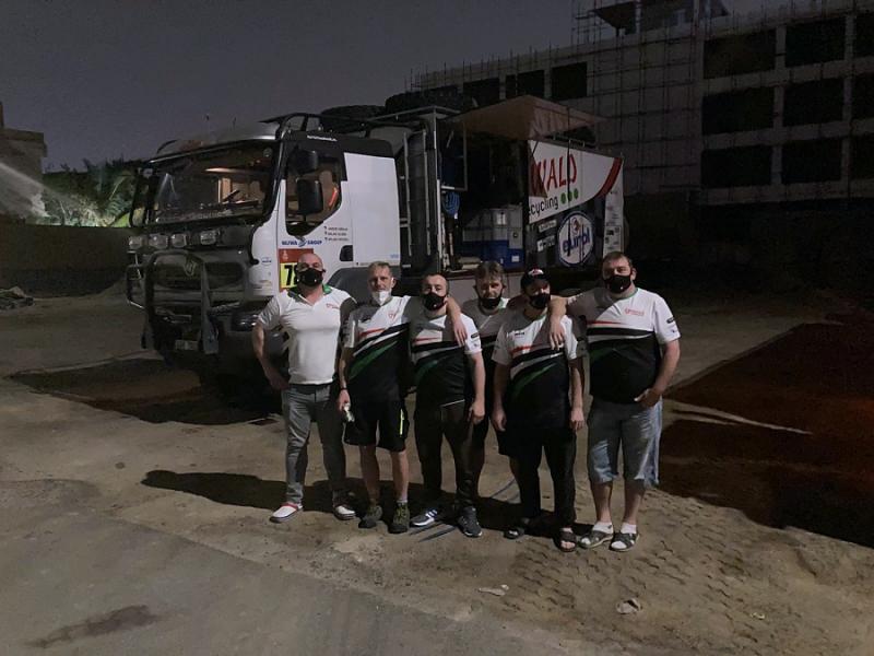After a two-day quarantine after arriving in Saudi Arabia, the last coronavirus tests took place. All members of MKR Technology and related racing teams went through with a negative result and therefore the organizers could let them pick up the racing equipment. With it, they also entered a closed, isolated bivouac, where no one can enter. Now it's up to two weeks' racing. "One of our groups waited a few hours longer for the results, so the boys were already nervous. On the other hand, they could enjoy luxury of the hotel even longer," smiled Mario Kress, head of MKR Technology's North Bohemian design team and added: "We didn't expect the results to be different, but of course we were all relieved. Now we can really focus only on the racing aspects," said Kress, who was aware, that in fact no relief is coming now. On the contrary, there are two very hard weeks on the menu, for which he and his technicians have prepared three Renault Trucks. They will be driven by traditional, proven Dutch pilots. Gert Huzink will drive the only hybrid special truck in the competition at Dakar. His team partner will be Pascal de Baar in the second truck. The third Renault from the new workshop in Chvalín in the Roudnice region will be driven by Martin van den Brink, who is accompanied by on-board mechanic Daniel Kozlovský from Roudnice. The crews took over the racing equipment on Wednesday in the early evening and on Thursday morning. "Now we have to check everything and get ready for the weekend start," said Mario Kress.