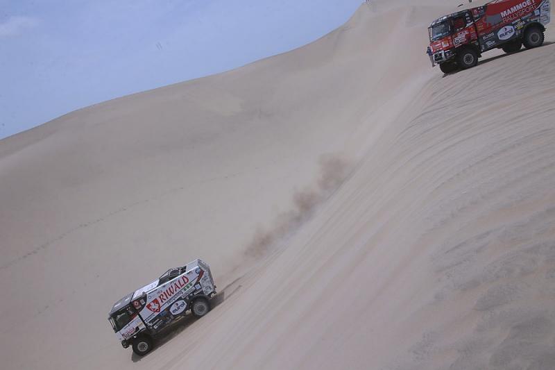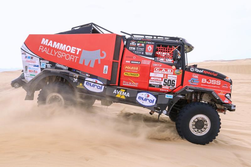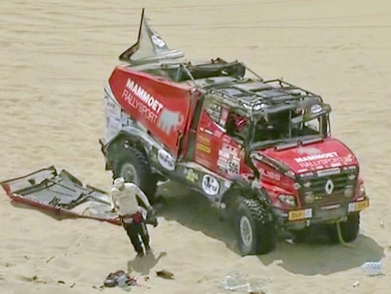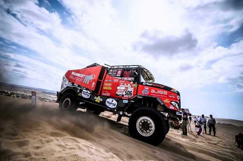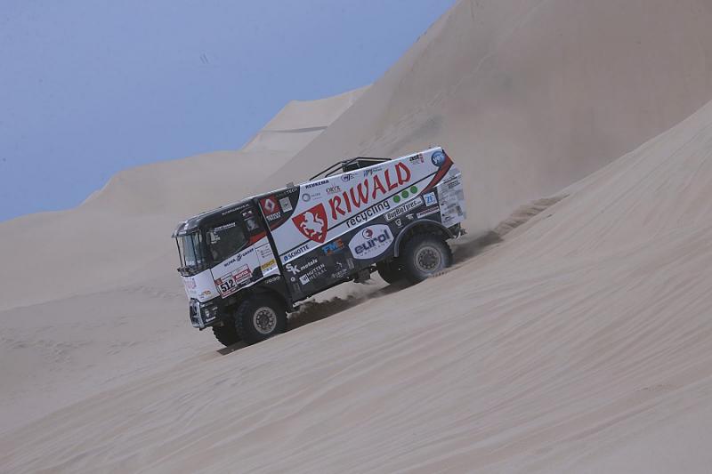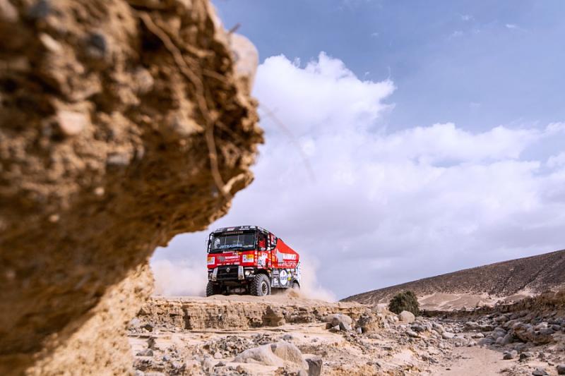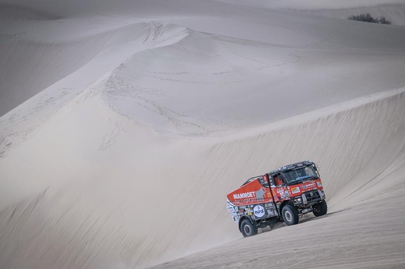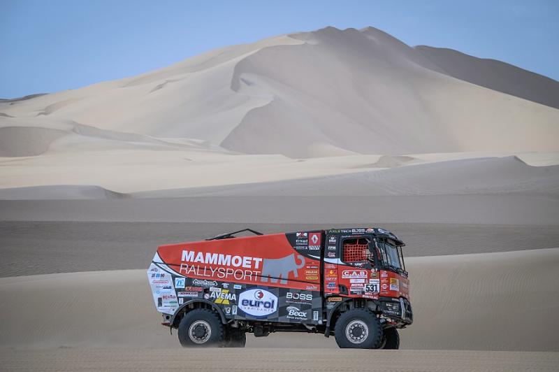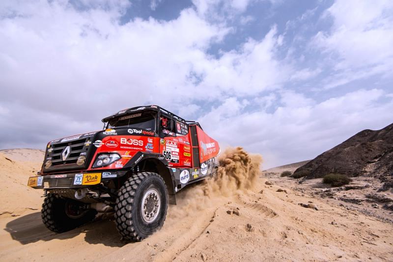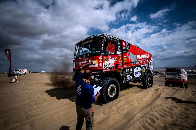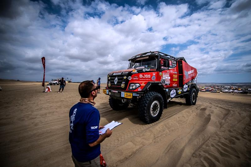 Ubiquitous sand and treacherous dunes right from the very beginning of the 41st Dakar Rally are present on every special section. After all, the sandy ground has to make up for seventy per cent of the entire race, and just one of the dunes has surprised the crew with the pilot Martin van den Brink. Even though the racing team was able to get into pieces, turn the truck back on its wheels and continue with a big loss, its further participation is unclear. "Although the boys are slowly continuing to bivouac, we do not know yet how big the damage is and whether we will be able to repair it at all,"said Mario Kress, lead designer of the Dakar specials from Židovice in North Bohemia. His other two trucks have done significantly better. After a more cautious ride, Gert Huzink arrived fifteenth and Janus van Kasteren just two places behind him.