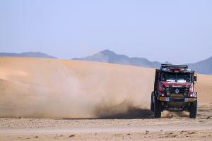 In the eighth act, trucks and cars had to take a timed loop of nearly four hundred and eighty kilometers with the start and finish in Wadi Al Dawasir. The crews had to cover almost seven hundred and twenty kilometers. While Russian Karginov celebrated the golden stage hat-trick, as he won the third consecutive stage and strengthened his position as the leader of the truck race, Dutch pilot Martin van den Brink on the other hand remained trapped on the course for several hours with problems with his rear differential. On the contrary, his fellow countrymen driving other three trucks by MKR Technology are already preparing for the next day in the bivouac. Pascal de Baar crossed the finish line as the twelfth in the ranking, losing around half an hour to the leader, Richard de Groot with the cab-over-engine Renault K520 was three positions behind him and Gert Huzink with the hybrid was classified 21st. "It's amazing how everyone is fighting with the course, and above all, how Gert's crew is coping with everything with just two persons without an onboard mechanic," Mario Kress said in awe.