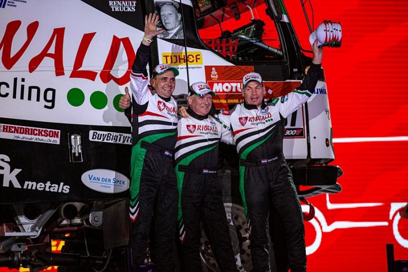 Kvartet severočeských renaultů vedli holandští piloti třech týmů, které spolu vzájemně spolupracovaly. Na palubě ostře sledovaného hybridu označeného C 460 Hybrid Edition za volantem seděl Gert Huzink z týmu Riwald Dakar. Jeho týmový parťák Pascal de Baar usedl do trambusového renaultu K520, stejně jako Richard de Groot ze stáje Firemen Dakar. Rudý speciál Renault CBH 4x4 s „čumákem“ přezdívaný Sherpa už tradičně vedl Martin van den Brink z Mammoet Rallysport. Šanci na úspěch měl každý z vyrovnaných pilotů. V průběhu závodu v elitní desítce nechyběl žádný z nich. Pódium ale uniklo hned několikrát. Nejlepším místem tak zůstaly čtvrté příčky Gerta Huzinka a Richarda de Groota.