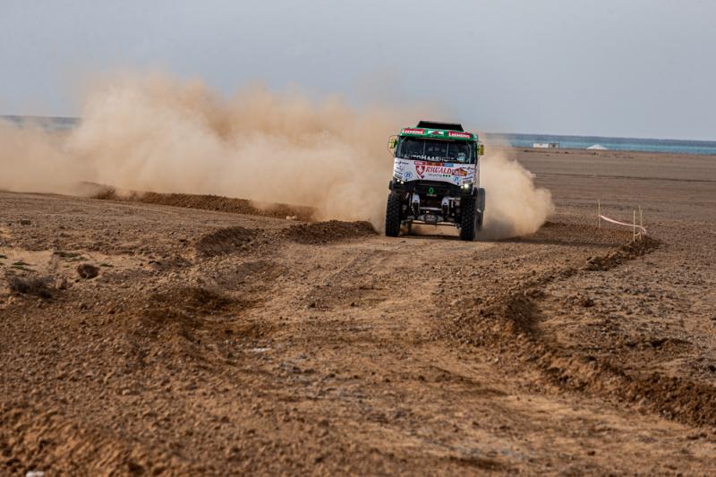 V neděli 1. ledna se slavná soutěž rozjede naplno a hned na úvod čeká posádky přes šest set kilometrů, z nichž bude tvořit téměř tři sta sedmdesát kilometrů měřenou závodní prověrku. 1. etapa bude zaoblenou smyčkou, kde písčitá trať povede po dlouhých kamenitých a štěrkových úsecích a v samotném závěru přijdou na řadu dokonce už i první písečné duny. „Úvodní etapa by podle pořadatelů neměla být nijak zvlášť náročná, ale měla by už ukázat, jak si kdo stojí, tak věřím, že budeme pokračovat minimálně stejně tak dobře jako v prologu,“ drží pěsti svým kamionům Mario Kress.