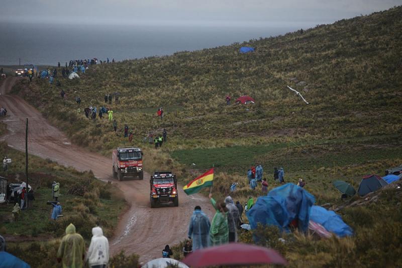 Při šesté prověrce posádky opustily území Peru a dostaly se do Bolívie. Na 760 kilometrů dlouhé trati z Arequipa do La Paz je čekala 313 kilometrů dlouhá měřená prověrka. Piloti jeli poprvé mimo dunová pole a znát to bylo především na rozdílech v cíli, které byly tentokrát jen v řádech minut. Etapu vyhrál Argentinec Villagra s Ivekem před českým závodníkem Martinem Kolomým. Jezdci v kamionech Renault Trucks ztratili minimálně – devátý van Kasteren z Mammoet Rallysport zaostal čtvrt hodiny za vítězem, Gerd Huzink pak o dalších osm minut.