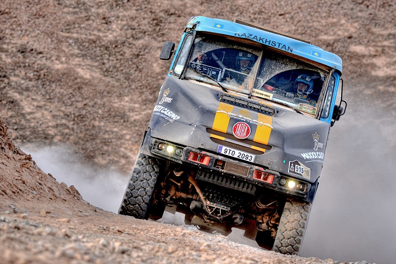 Po jednodenní pauze rozjely posádky kamionů závěrečný týden Rallye Dakar. 37. ročník skončí už tuto sobotu a v rámci 9. etapy byla na programu druhá nejdelší rychlostní zkouška. S tou si nejlépe poradil vedoucí muž Rus Mardějev. Artur Ardavičus s naším mechanikem Danielem Kozlovským se znovu vešli elitní desítky.