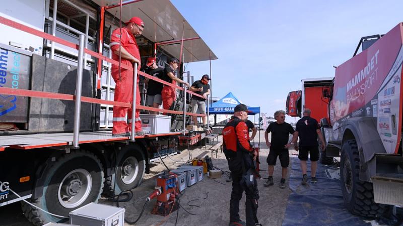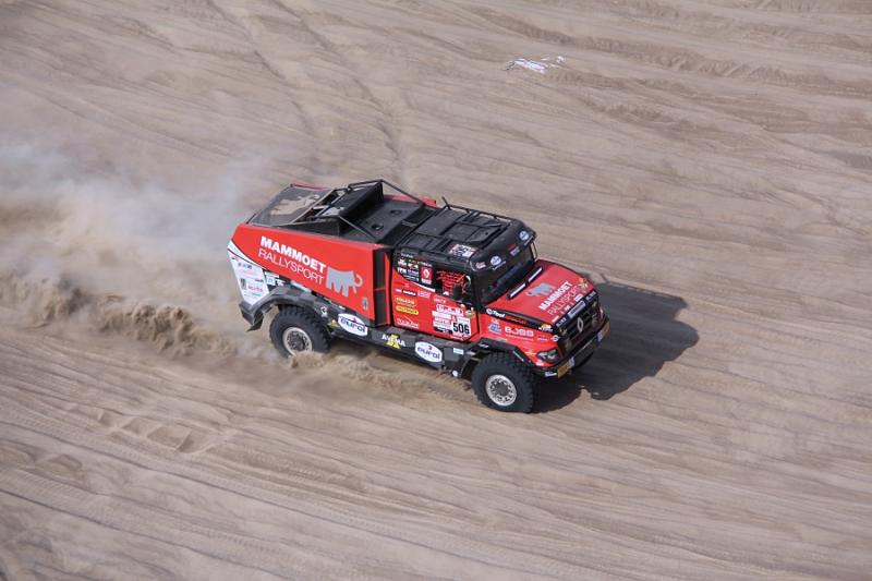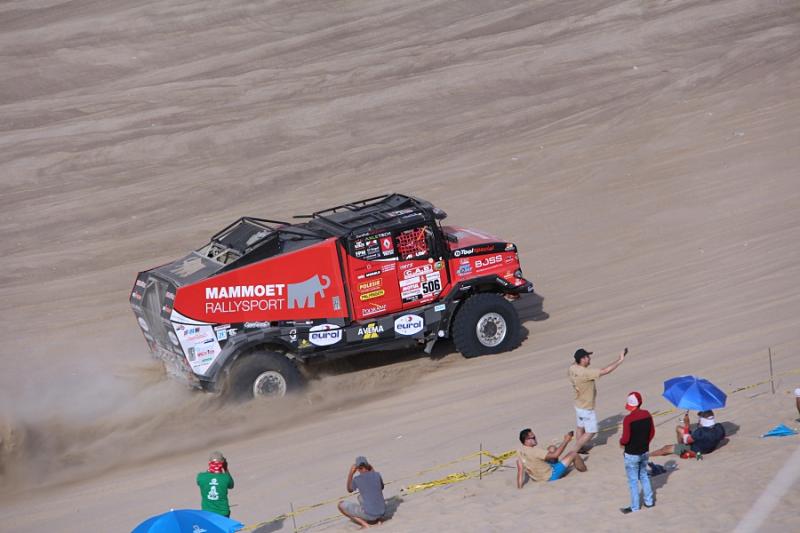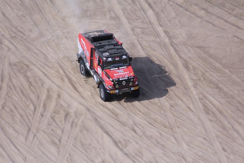Hned na úvod zazářil vítěz předchozích dvou dakarských ročníků Rus Eduard Nikolajev se svým kamazem. Toho ale pronásledovala hned tři iveka s Holanďanem van Genugtenem, Argentincem Villagrou a někdejším šampionem de Rooyem. To tři holandští piloti severočeských kamionů dojeli tentokrát za elitní desítkou. Martinu van den Brinkovi patří třináctá pozice, Gertu Huzinkovi patnáctá a hned za ním byl Janus van Kasteren. „Posádka s Martinem udělala drobnou navigátorskou chybu, kvůli které ztratila asi devět minut, naopak Gert musel trochu zpomalit po té, co ho předjel kamaz, který mu pak prášil do výhledu. Prakticky o nic nejde, protože jsme na začátku a ztráty jsou opravdu zanedbatelné,“ podotkl Mario Kress.