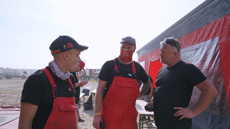 „Úvod nechtěl nikdo přepálit a udělat zbytečnou chybu. Přece jen jsou před námi takřka dva těžké týdny, takže si piloti chtěli pro začátek vše pořádně osahat a vyzkoušet. Etapu, která se hned jela z velké části v písečných dunách, si ale podle všeho všichni užili,“usmál se Mario Kress, hlavní konstruktér dakarských kamionů Renault Trucks.