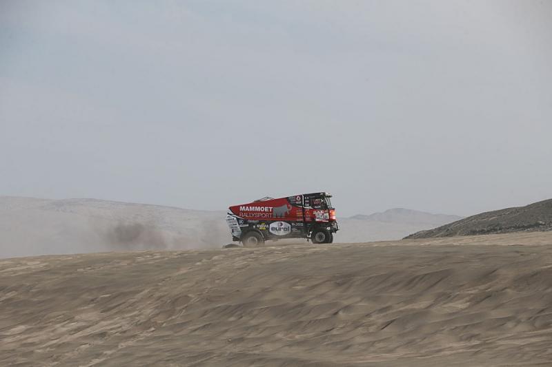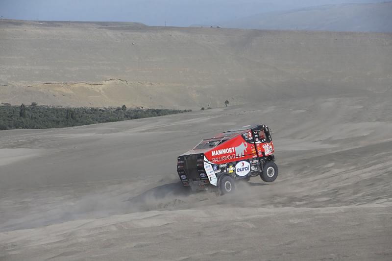 Smůla ale Mammoet provázela i ve středeční 5. etapě. Ta byla nejdelší v letošním ročníku. Piloti museli ujet přes devět set třicet kilometrů, z nichž měřenou speciálu tvořilo skoro dvě stě sedmdesát. Hned na začátku se na tři hodiny zastavil Janus van Kasteren. Do cíle nakonec přijel jedenadvacátý se čtyřhodinovou ztrátou na vítězného Rusa Nikolajeva. Dokonce i Nikolajev se octnul se svým Kamazem na boku, ale po pomoci od Martina Kolomého se znovu vrátil na vítězná kola. Dakar ale musel předčasně opustit slavný Sebastian Loeb. To pilot židovického speciálu Gerd Huzink zajel etapu ve dvanáctém čase se ztrátou čtyřiceti minut.