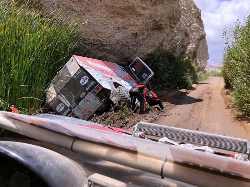 Zatímco díra v motoru znamenala předčasný konec pro kamion Gerta Huzinka z Riwald Dakar, Janus van Kasteren z týmu Mammoet Rallysport v soutěži standardně pokračuje, avšak s nepříjemnou ztrátou. Etapa přinesla velké problém také českému pilotovi Martinu Macíkovi, který dokonce jel na etapové vítězství, ale nakonec po jenom skoku utrhl kolo a sen o zlatě se rozplynul. Dakar také postil incident, kdy kamion Rusa Karginova srazil šedesátiletého diváka, který však stál v zakázané zóně. Jelikož posádka vozu nezastavila, jury se ji rozhodl ze soutěže vyloučit. Zraněný muž byl dle uvedených informací se zlomenou stehenní kostí převezen do nemocnice. Pořadatelé nakonec kvůli silné mlze etapu z bezpečnostních důvodů předčasně ukončili. Na oficiální výsledky se zatím stále čeká, ale za vítěze etapy je považován vedoucí muž letošního ročníku Eduard Nikolajev s kamazem, který je i lídrem průběžné klasifikace.