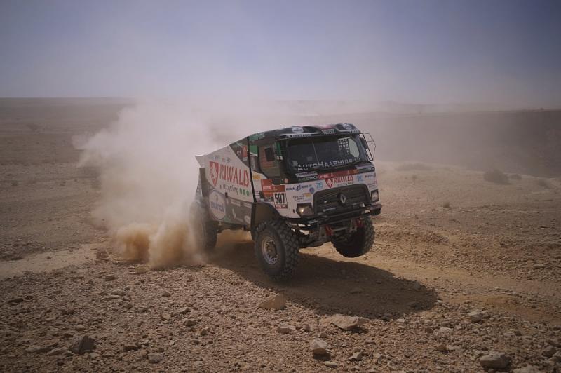 A právě Gert Huzink s tím nejsledovanějším, tedy s historicky prvním hybridním kamionem na věhlasné soutěži, přijel do cíle v Haradhu v pátém nejlepším čase. Huzink ztratil necelých deset minut na vítězného Karginova. Rus na kamazu jen pokračuje na vítězné vlně, když získal čtvrté etapové prvenství v řadě a v současné chvíli není pochyb o tom, kdo je suverénem letošního ročníku. Huzinkovi spolubojovníci, holandští jezdci Pascal de Baar pak přijel dvanáctý, Fireman Richard de Groot osmnáctý a tři čtvrtě hodiny ztratil na jednadvacátém místě smolař předchozí etapy Martin van den Brink.