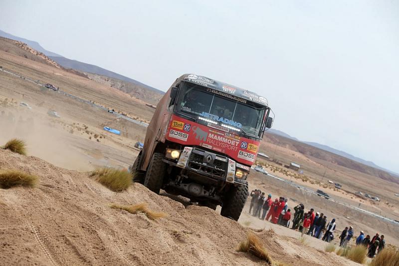 Během 8. etapy z Uyuni do Tupizy posádky překročily hranici čtyř a půl tisíce výškových metrů. V součtu je čekalo 561 kilometrů, ze kterých bylo 381 měřených. Až do předposledního way pointu se piloti severočeských renaultu drželi v elitní desítce. Mladý Janus van Kasteren, který na Dakaru zažívá svoji premiéru, si jel pro skvělé šesté místo, jenže pak přišel technický problém s řízením, který ho na dvě hodiny zastavil. Etapu vyhrál Rus Sotnikov. Gerd Huzink byl klasifikovaný sedmnáctý a van Kasteren nakonec jedenadvacátý.