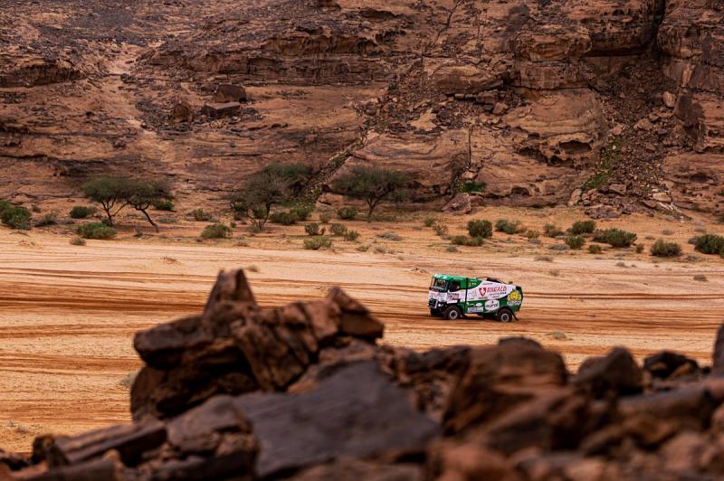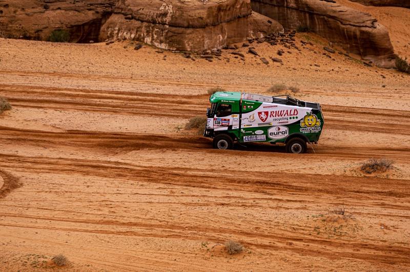 Úterní 3. etapa z Aluly do Ha’il měla celkem téměř šest set kilometrů. Měřenou část ale pořadatelé zkrátili, a tak se posádky přesunuly do bivaku. Severočeské kamiony Gerta Huzinka a Pascala de Baara jely bez problémů, klasifikovány byly na deváté a jedenácté pozici. Rychlou asistenci Adwina Hoonderta tentokrát doslova zbrzdily potíže s ruční brzdou a hodnocený byl jako třicátý.