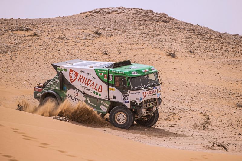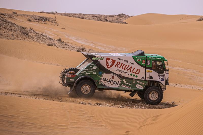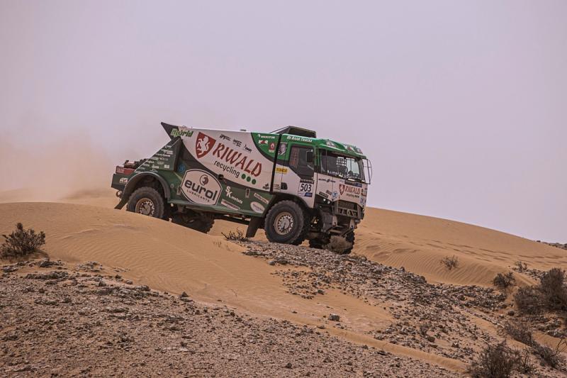 „Technika tu neskutečně trpí. Člověk by brečel, když vidí v jakém stavu přijíždí kamiony do cíle a to samozřejmě nejen ten náš. Tvrdé je to pro všechny. My dnes museli hned několikrát zastavovat a měnit doslova rozervané pneumatiky. Tím jsme tentokrát ztratili hodně času. Jinak si troufám říci, že bychom měli na to být nejrychlejší,“ poznamenal Mario Kress, hlavní konstruktér hybridního kamionu zeleno-bílé barvy týmu Riwald Dakar.