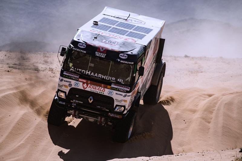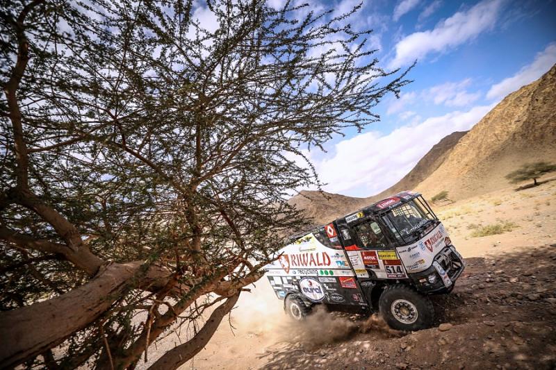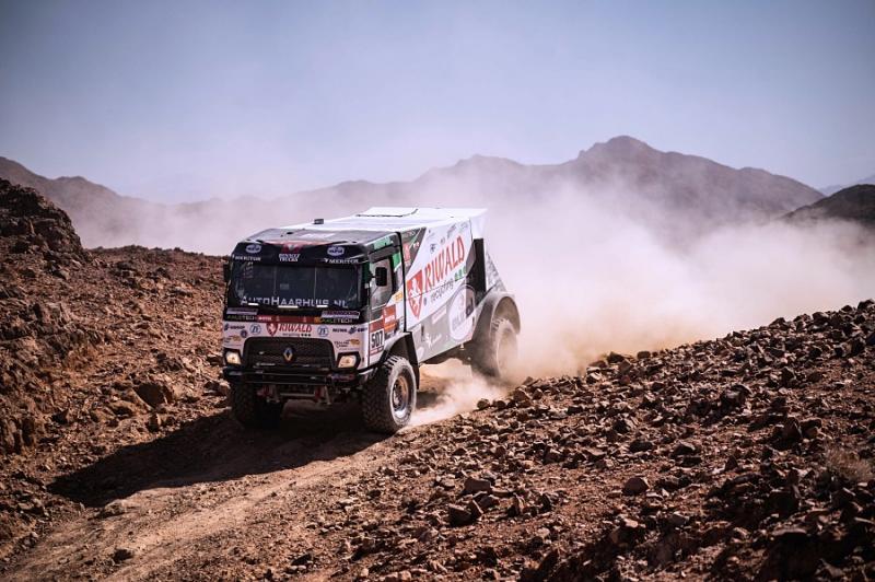 S hybridním speciálem přijel v pátém nejrychlejším čase pilot holandského týmu Riwald Dakar Gert Huzink. Na nejrychlejšího Rusa Šibalova ztratil přesně čtrnáct minut. Čtvrtou etapu z Neomu do Al Ula dlouhou přes čtyři sta padesát kilometrů přitom zcela ovládly ruské kamazy, které letos poprvé obsadily kompletní stupně vítězů. Nejlépe zajel právě Šibalov před týmovými parťáky Karginovem a Sotnikovem. V elitní desítce ale byly hned dva severočeské renaulty z dílny MKR Technology. Osmá příčka totiž patřila Huzinkovu kolegovi Pascalu de Baarovi. Krajan Martin van den Brink z Mammoet Rallysport byl tentokrát dvanáctý a nebyl by to Dakar, pokud by přece jen někde nepřišly technické potíže. Ty tentokrát potkaly posádku pilota Richarda de Groota. Zatímco včera se trojice sedící v trambusovém renaultu K 520 v hasičských barvách týmu Firemen Dakar radovala ze skvělé „brambory“, tentokrát se na trati prala s potížemi na převodovce. „Kluci zkusili zastavit a problém opravit během etapy, ale bohužel se jim to nepovedlo, tak museli pokračovat výrazně pomaleji, protože jim nešly některé rychlosti vůbec zařadit,“ sdělil roudnický mechanik týmu MKR Technology Daniel Kozlovský. Posádka nakonec ztratila lehce přes dvě hodiny, když byla klasifikována na jedenadvacáté příčce.