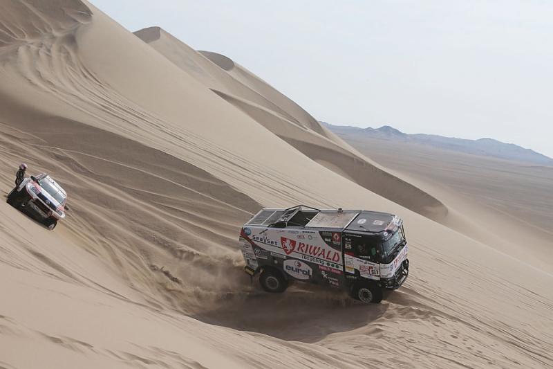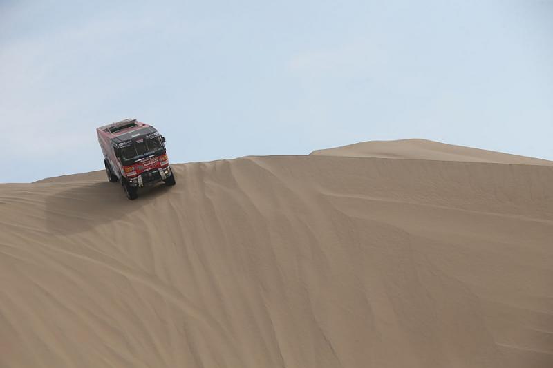 „Na půl hodiny jsme se zasekli v dunách. Pro mě to byla opravdu nejhorší etapa v životě. Bylo mi strašně špatně, žaludek jsem měl všude, jak to skákalo. Podklad byl totiž hrozně nestabilní, auto se náhle hrozně propadalo. Byla to divoká etapa a pro mě byl průjezd cílem vymodlený. To, že jsem se nepozvracel, byl spíš zázrak,“ oddechl si v cíli Daniel Kozlovský, palubní mechanik kamionu s číslem 506.