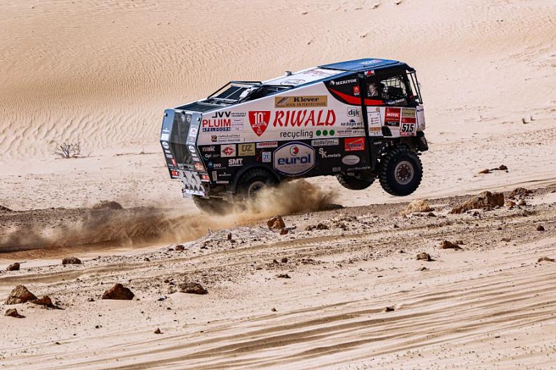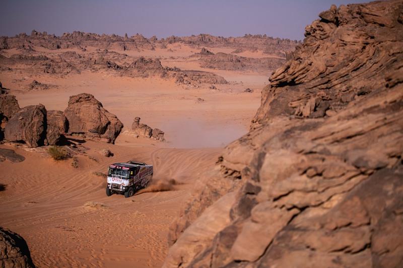 Soutěž stále se svým kamazem vede Rus Sotnikov. Van den Brink klesl na osmou příčku a de Baar si udržel svoji jedenáctou pozici. Do cílové Džiddy zbývá kvartet etap. Devátá prověrka je pět set osmdesát kilometrů dlouhá smyčka se startem i cílem v Neomu. Speciála, během které se posádky vydají ke břehu Rudého moře a pak pojedou podél jeho pobřeží, má být kvůli své délce a rozmanitosti jednou z nejtěžších v letošním roce.