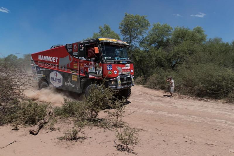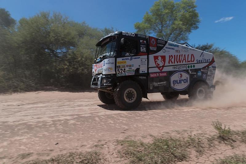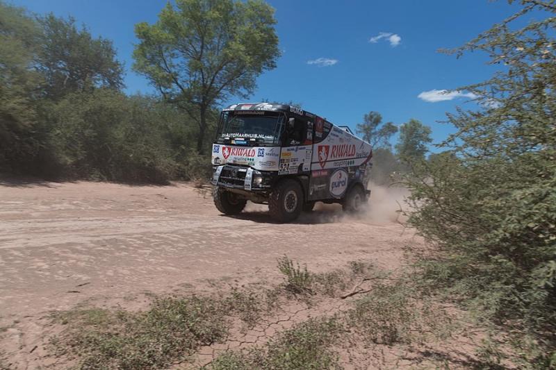 Holandsko-česká posádka kamionu s číslem 506 si s nástrahami úterní trati poradila nejlépe. Cílem projela ve vítězném čase lehce přes dvě a půl hodiny s náskokem dvou minut na druhého Rusa Sotnikova na kamazu. Další necelou minutu ztratil třetí v pořadí Holanďan Versluis. Van den Brinkův týmový parťák z Mammoet Rallysport Pascal de Baar cílem projel s odstupem šesti minut na čtrnácté pozici. Hendikepovaný andorský pilot českého týmu Bonver Dakar Project Albert Llovera, jehož tatru pohání agregát od MKR Technology, pak projel cílem devětadvacátý. Třetího z holandských pilotů krotících kamion ze severočeských Židovic Gerta Huzinka postihla nehoda. Posádce se nic naštěstí nic nestalo. Klasifikována ale byla na padesátém místě a rozsah škod v tuto chvíli neznáme.