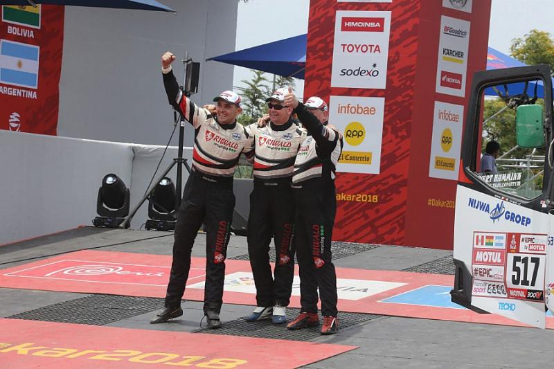 „Po slavnostním startu v Limě nás čekal nejprve nudný dvě stě padesát kilometrů dlouhý přejezd k měřené speciále. Ta měla jen tři desítky kilometrů, ale o to ostřejší byla. Martinovi to sedlo, takže úvod super,“ sdělil Daniel Kozlovský, palubní mechanik stříbrného kamionu z dílny MKR Technology.