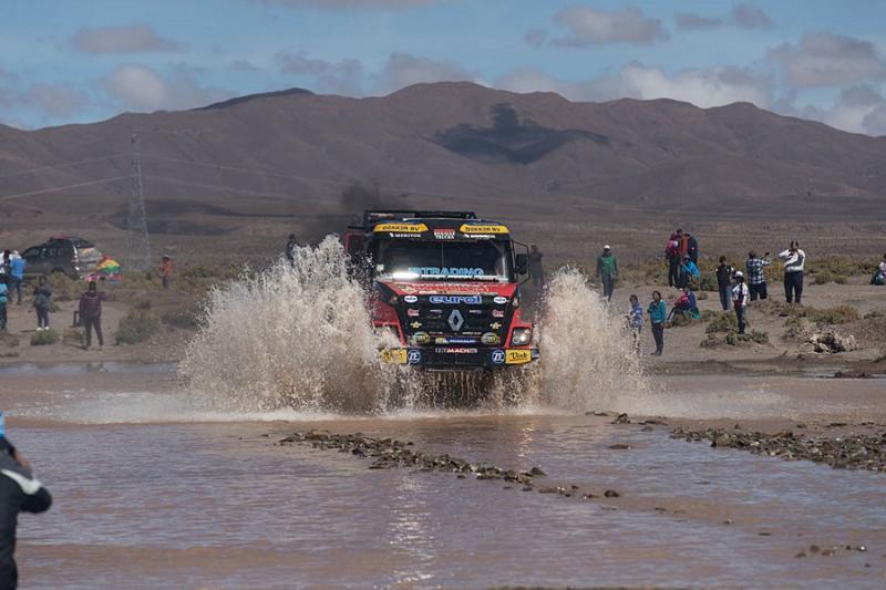 Podle původních plánů, měla být 8. etapa z Uyuni do Salty se svojí měřenou částí tou nejdelší v letošním očníku. Pořadatelé ji ale kvůli počasí museli zkrátit na nějakých sto sedmdesát kilometrů. Nejlépe ji zvládla právě posádka Martina ven den Brinka, Daniela Kozlovského a Marcela Blankestijna se sedmnáctivteřinovým náskokem na druhého Argentince Villagru. Třináctý se třináctiminutovým mankem dojel van den Brinkův parťák z týmu Mammoet Rallysport Pascal de Baar.