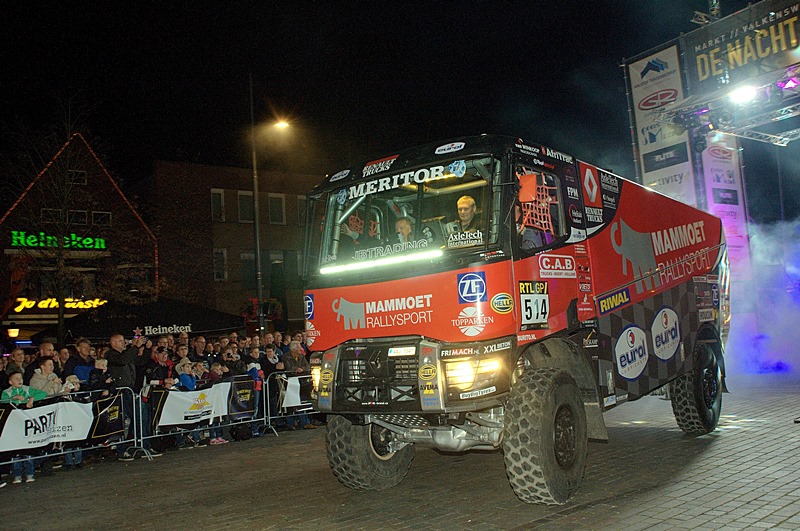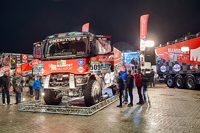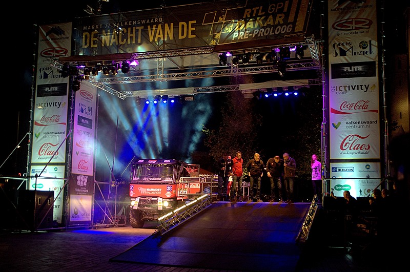 Odjezdu severočeských speciálů předcházelo i několik velkolepých rozloučení. Minulý týden se holandští účastníci nadcházejícího Dakaru sešli v nizozemském Valkenswaardu při tradiční akci GP Dakar Pre-Prolog. Publikum na závodišti Eurocircuit Valkenswaard poznalo nejen motorkáře, čtyřkolky a bugyny, ale také závodní kamiony. Chybět přirozeně nemohli piloti speciálů Mammoet Rallysport, ale ani někdejší vítěz nejtěžší rallye světa Gérard de Rooy s parťákem Alešem Lopraisem. Na jakémsi slavnostním otevření nového ročníku soutěže pro holandské posádky se potkalo přes dvacet tisíc fanoušků, což jen potvrzuje atraktivitu dálkových soutěží v Holandsku.