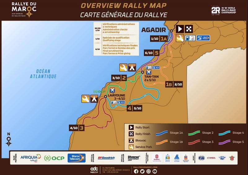Závod startuje sobotním prologem v Agadiru, kde měřená speciála má symbolických 9 kilometrů. Od neděle už je na programu pět plnohodnotných prověrek. Celkově posádky budou muset zvládnout téměř dva a půl tisíce kilometrů, z nichž je patnáct set měřených. Závod tedy skončí ve čtvrtek opět v Agadiru.