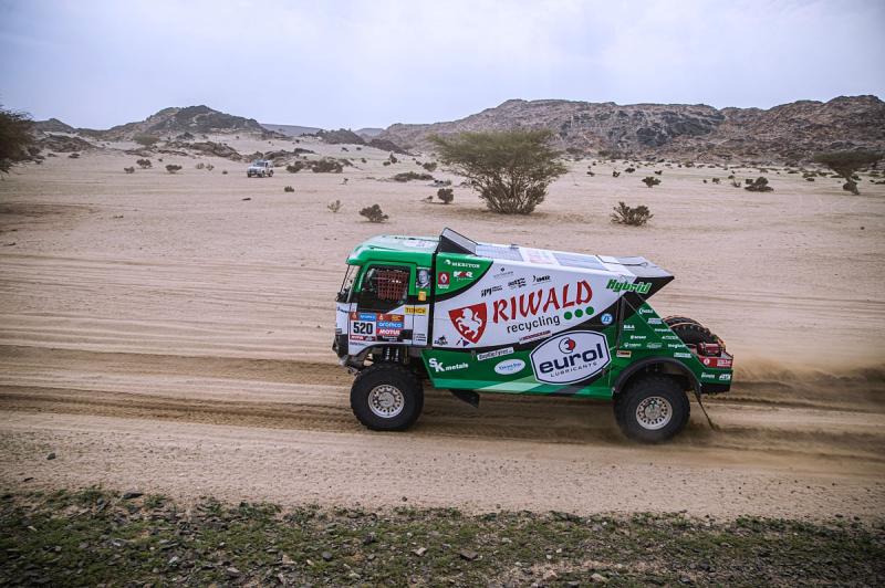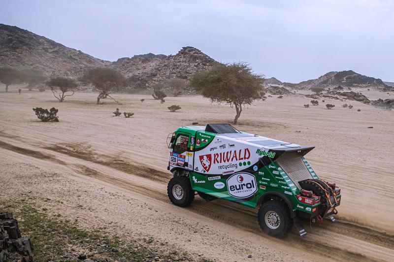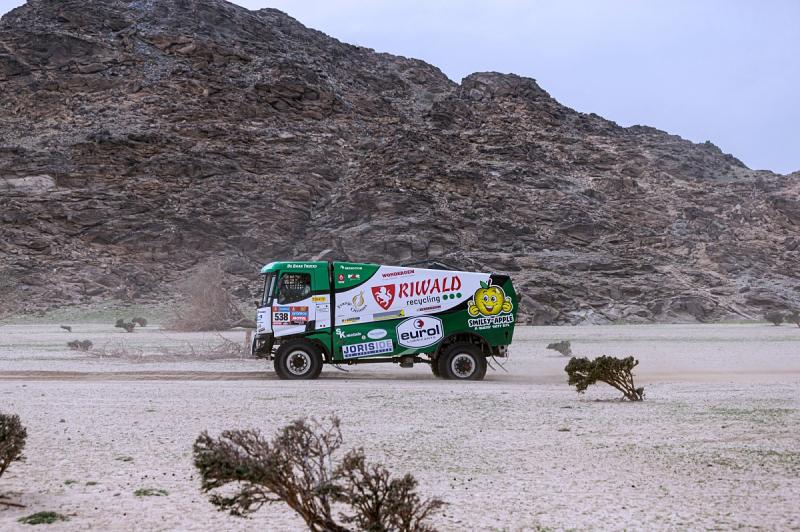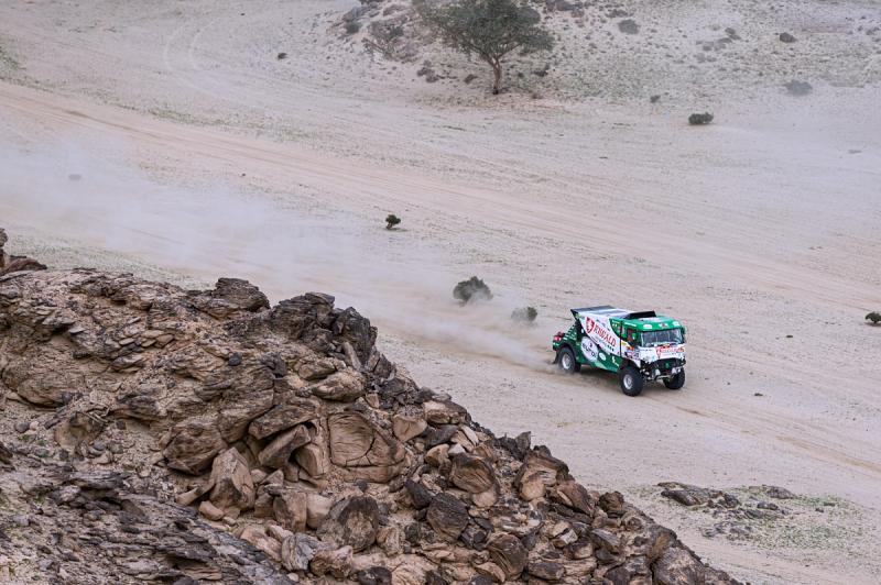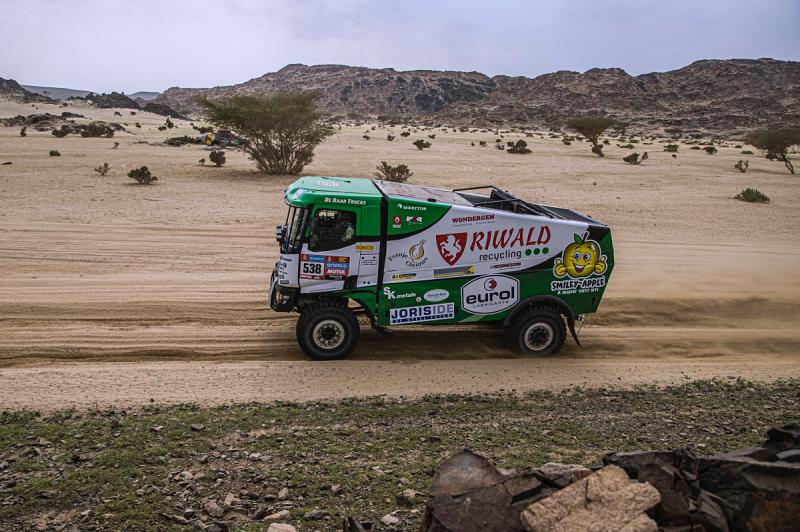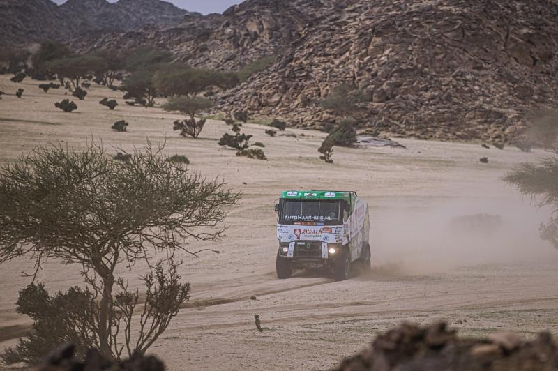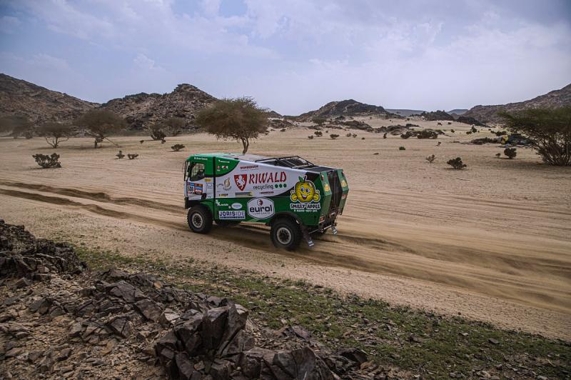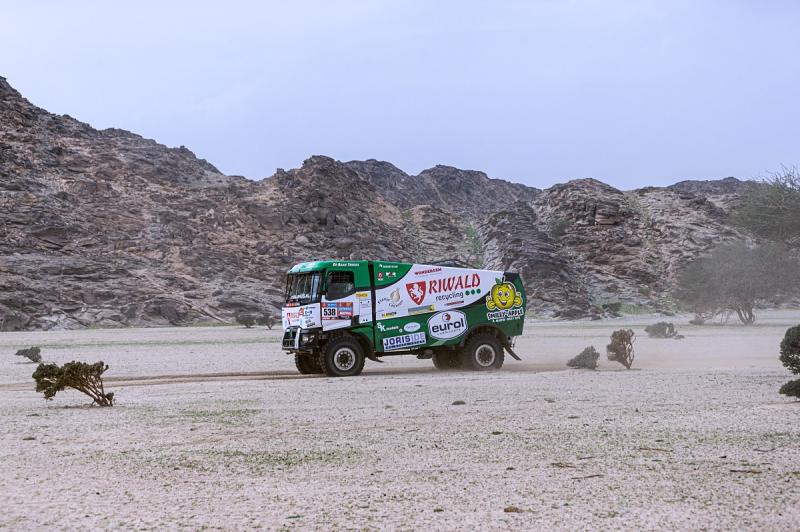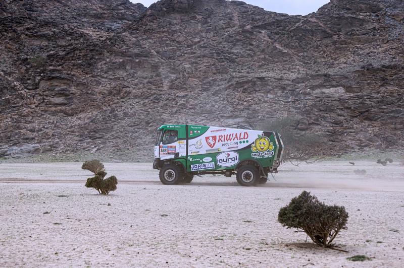 Gert Huzink byl nakonec klasifikovaný jako čtrnáctý. To oba jeho týmoví parťáci tolik štěstí neměli. Pascal de Baar musel být do bivaku přitažen, protože mu hned po necelých dvaceti kilometrech po nárazu kamenem praskla olejová trubka. Olej se přitom vznítil a způsobil požár kamionu. Ten ale posádka dokázala svépomocí uhasit. „Vyprázdnili jsme čtyři hasicí přístroje, než se nám podařilo plameny uhasit,“ konstatoval Pascal de Baar. Poškození ale bylo takové, že by se posádka sama do bivaku nedostala. Tím také vyhasla šance na celkové solidní umístění. „Uděláme maximum, aby zítra nebo pozítří mohl Pascal dál pokračovat a pokusit se alespoň o dílčí úspěch,“ sdělil Mario Kress.