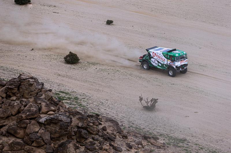V pondělí na posádky čeká 2. etapa ze Sea Campu do Aluly dlouhá šest set kilometrů, z nichž je téměř tři sta sedmdesát měřených. Posádky se dostanou do výšky přes tisíc metrů nad mořem a na trati se budou moci pokochat nádhernými kaňony a krajinou. Etapa se bude rozhodovat v dunách, ale na obzoru budou vidět některé z majestátních nabatejských chrámů.
