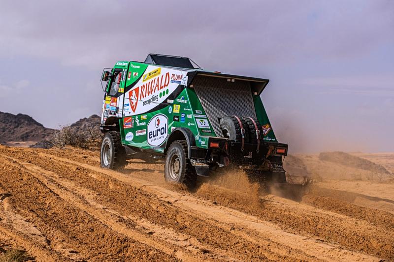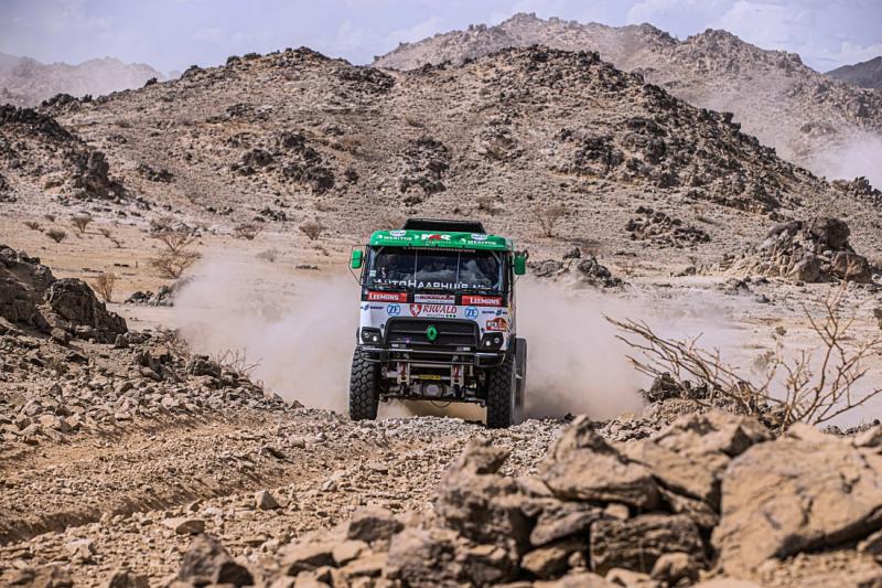 Celá karavana pak zamířila na dlouhou spojnici do Ha'il, kde na účastníky čekalo velké startovní pódium pro nedělní 1B etapu. Ta se pojede na okruhu v hornaté krajině severní Saúdské Arábii a náročná bude především pro navigaci. Kamiony budou muset zvládnout přes pět set kilometrů, z nichž magických 333 bude měřených.
