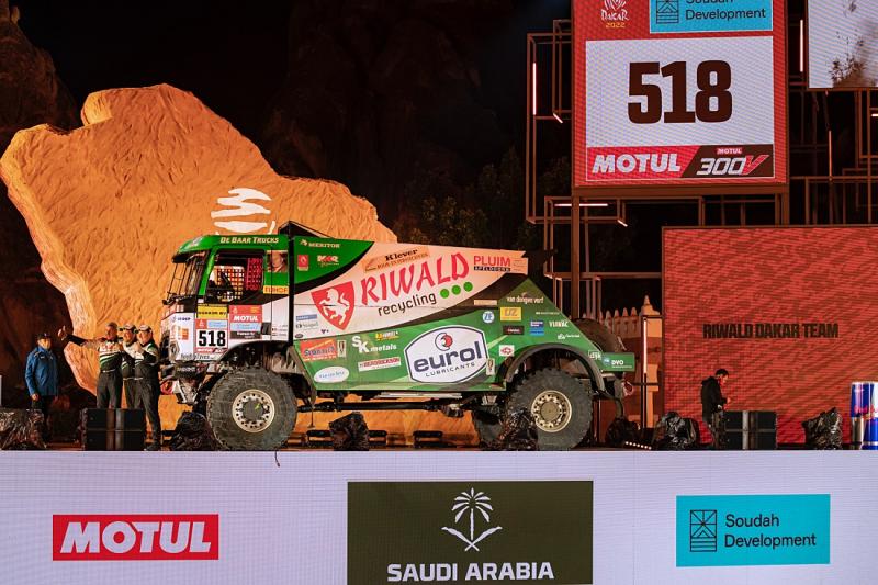 V elitní desítce zahájila dvojice severočeských kamionů Maria Kresse 44. ročník dakarské rally. Pilot hybridního speciálu Huzink cílem projel šestý, kolega de Baar desátý.