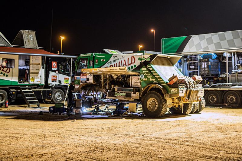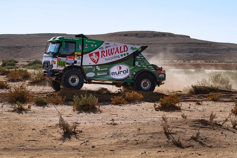 „Podařilo se nám přes noc prakticky něco nemožného. Pascal nemohl věřit, že je stále ve hře. Měl z toho slzy v očích. Jsem opravdu hrdý na celý náš tým,“ netajil svou radost Mario Kress, šéf projektu MKR Adventure, když ráno dokončil celonoční práci na obnově poničeného kamionu Pascala de Baara. Ten ve středeční 4. etapě na náročné trati měl nepříjemně tvrdý dopad poté, co ho doslova „nakopla“ duna. Mechanici, kteří už několikátý den zamhouřili oko v součtu jen na několik hodin, dokonce v danou chvíli naměřili v kabině přetížení 7,8G! Silně poničený speciál ale těsně před odjezdem na etapu dokázali dát dohromady. „Každou hodinu jsem se byl dívat, jestli se to klukům povede. Jen 3 minuty před startem bylo auto připraveno. Mario udělal testovací jízdu a hned jsme se vydali na cestu s tím, že do první neutralizace jsme měli jet klidně a auto tam hned zkontrolovat. To ale jelo výborně. Sice jsme byli silně opocení, ale kluci ho udělali jako nové. Velká poklona všem, kteří ho takhle dali do kupy. Ti by si zasloužili medaili,“ chválil mechaniky ze severočeského Chvalína holandský pilot Pascal de Baar, který byl nakonec ve čtvrteční 5. etapě klasifikovaný na jednadvacáté příčce.