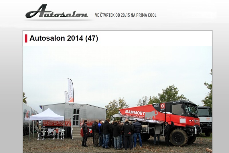 Autosalon je už deset let na televizi Prima motoristický pořad s nejvyšší sledovaností. Skupina expertů v něm testuje automobily, motocykly a zabývá se všemi tématy, které s motorismem souvisí. Nevyhýbají se ani kontroverzním tématům. Zkoušejí dosud nevídané věci. Takže se nebojí sednout do automobilu, který následně nabourá do zdi. Testují i extrémní techniku, která se už ani vozem nazvat nedá. Tentokrát si moderátor vyzkouší jízdu v našem dakarském speciálu. Při testování v Senici totiž usedl do kokpitu našeho renaultu, který jsme stavěli pro holandský tým Mammoet Rallysport. Přímo v Mobil baru pak šéf naší stáje Mario Kress napíše tajný tip výsledku nového ročníku Dakaru. S kým svůj tip uzavíral a jak se vlastně moderátor cítit, když „vylezl“ po testovací jízdě, se dozvíte právě už tento čtvrtek ve 20:15. Tak se nezapomeňte dívat!