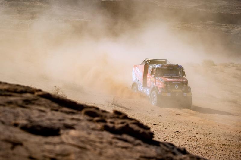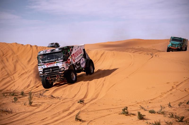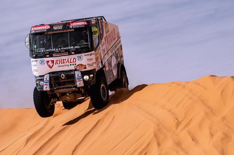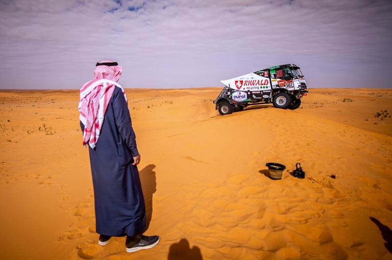 Do 6. etapy nakonec ostře sledovaný hybrid vyjel s dvoučlennou posádkou – pilotem Gertem Huzinkem a navigátorem Robem Buursem. „Pravidla bohužel neumožňují vyměnit člena posádky. Ve dvou to je výrazně těžší. Bez palubního mechanika navíc musíte jet hodně opatrně, aby se cokoli nestalo. Nejen výměna pneumatiky je složitější. Celý kamion je prostě přizpůsobený na tři lidi. Mechanik navíc v dunách pracuje s tlakem v pneumatikách. Nebude to sranda,“ poznamenal Mario Kress.
