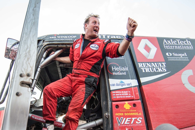 Cesta za vytouženým zlatem byla mimořádně trnitá. Hned ve druhé etapě, navíc první závodní, vinou přehřáté brzdy shořel první kamion týmu Mammoet Rallysport pilota Martina van den Brinka, kterému měl Pascal de Baar spíše krýt záda při cestě za splněným snem. Nálada v týmu byla příšerná, ale de Baar hned od následující etapy dal jasně najevo, že kamiony Renault Trucks prostě patří mezi elitu. Postupně se probojoval do nejlepší desítky, aby hlavní trumf vynesl ve středeční 10. etapě, o níž odborníci mluví jako o jedné z nejtěžších vůbec. Úmorné pouštní vedro a především dlouhé a těžké duny Fiambala s jemným zrádným bílým pískem. Etapa vyloženě pro pouštní specialisty. Podle všeho se právě zde měl lámat chleba. Desátý díl z Belénu do La Rioja měřil v součtu sedm set šedesát kilometrů. Rychlostní zkouška měla dvě stě osmdesát. V připraveném extrému jakoby si de Baar liboval. Do etapy vyjížděl jako patnáctý, ale začal předjíždět jednoho soupeře za druhým. Sklonit se před ním nakonec museli i předchozí vítězové Dakaru. Za neuvěřitelně těžkých téměř pět hodin závodu si holandský pilot zajistil fenomenální triumf. Druhý krajan de Rooy zaostal o více než dvě a půl minuty, třetí Rus Mardějev s kamazem dokonce už o téměř půl hodiny. "Pohled do výsledků je tak strašně krásný. Pascal zajel životní závod a ukázal, že naše kamiony opravdu mají na to uspět v tak extrémních podmínkách a především mají na to vyhrávat. Lepší důkaz bychom jen těžko získávali. Stále jsme ale nováčky a máme co zlepšovat. O to jasnější vize je před námi. I tak se neubráním tvrzení, že bez potřebné dávky štěstí se Dakar vyhrát nedá, ať máte techniku jakkoli dobře připravenou. T eď ale rozum stranou, vyhráli jsme a hodláme si to užít. Před námi jsou poslední tři dny a já si moc přeji, abychom soutěž zdárně dokončili a splnili si náš původní cíl, tedy být do desítky," snaží se marně krotit pozitivní emoce Mario Kress.