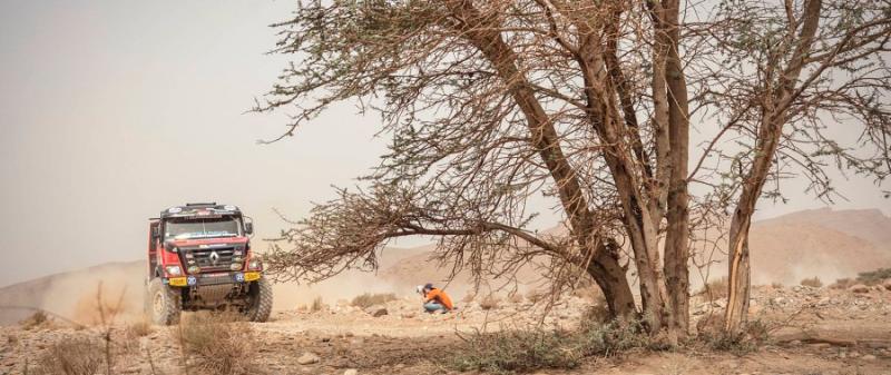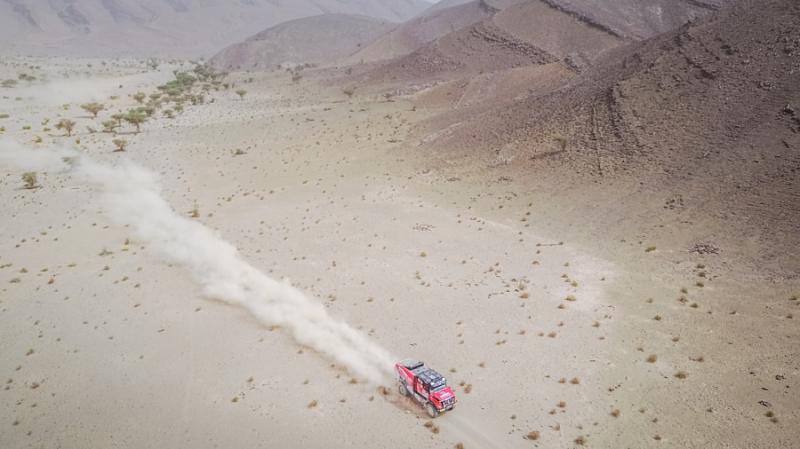 Během třetího dne si posádky musely poradit s tratí dlouhou necelých tři sta padesát kilometrů z Foum Zguid do Oum Irane. Na trase na ně čekala rozmanitá příroda počínající rozlehlými pláněmi, rychlým průjezdem vysušeného jezera Lac Iriki až po duny Erc Chegaga a jemný písek fesh fesh. Pořadatelé slibovali první nárůst rozdílů a nespletli se. Vítězný Martin van den Brink s kamionem Renault Trucks jako jediný cílem projel pod pět hodin. Druhý krajan Gert Huzink ztratil dvacet minut a třetí Elisabete Jasinto už zaostala takřka o hodinu. V součtu to znamená, že double severočeských renaultů ve třetí etapě přinesl i průběžný vedoucí double v celkových výsledcích. Van den Brink si upevnil vedení a za něj se posunul Huzink, parťák ze spolupracujícího týmu Riwald Dakar.
