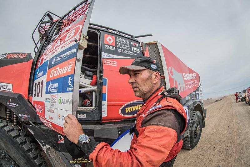 Martin van den Brink tři sta čtyřicet kilometrů dlouhou etapu na trase z Hami do Dunhuangu zajel v nejrychlejším čase. Necelé tři minuty na něj ztratil Rus Mardějev. Také další tři kamazy přijely s minimálním rozdílem. Týmový parťák Pascal de Baar tentokrát dorazil na deváté pozici. „Je tu velmi silná konkurence, jedou dva vítězové Dakaru, a srovnání s flotilou kamazů je pro nás opravdu velmi cenné a pro vývoj techniky zásadní. S vývojem proto můžeme být mimořádně spokojeni. Přestože je stále třeba stát nohama pevně na zemi, věřím, že na pódiu máme šanci skončit,“ přeje si Mario Kress.