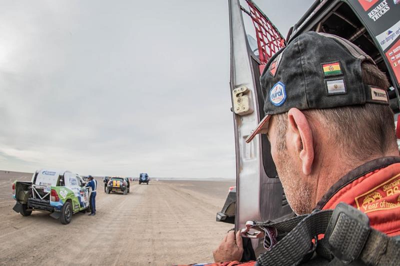 Van den Brink si stále drží vedoucí pozici. Krvelační piloti kamazů mu ale šlapou na paty. Druhý Mardějev zaostává jen o čtyři a půl minuty, třetí Sotnikov ztrácí lehce přes devět. Pascal de Baar je průběžně osmý.