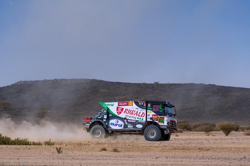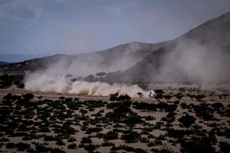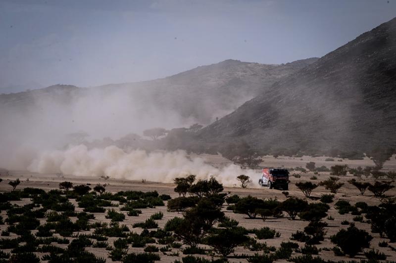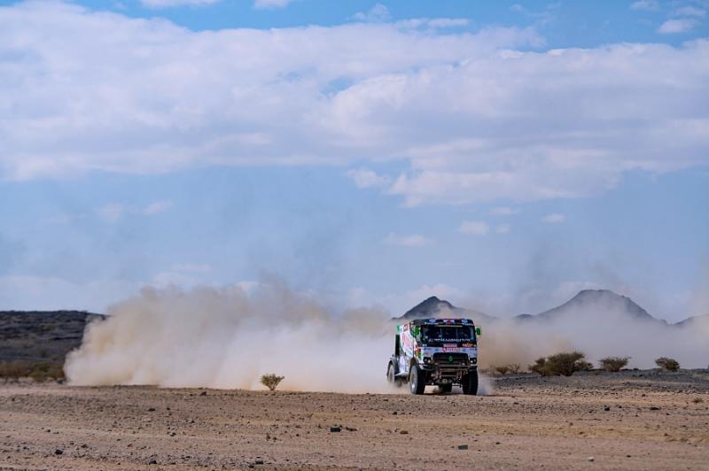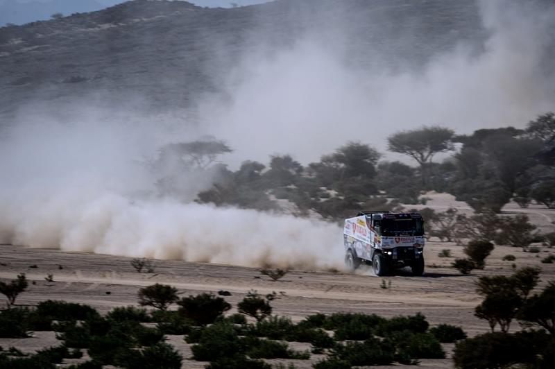 První etapa z Džiddy do Biši měřila celkem 345 kilometrů, ale měřený úsek měl necelých dvě stě osmdesát kilometrů. Šlo o druhou nejkratší speciálu letošního 43. ročníku. Co do náročnosti se ale řadila k těm tvrdším. V rámci pondělní 2. etapy z Biši do Wadi Ad-Dawasiru čeká na posádky v součtu lehce přes šest set dvacet kilometrů, avšak téměř čtyři sta šedesát měřených. „Po těch letech v Sherpě Martin stále trochu hledá čumák, který nový kamion už nemá, ale jinak se s ním sžívá skvěle a už mu začíná dávat pěkně za uši. Přestože jedeme spíše opatrněji, cítím ten adrenalin a těšíme se na další prověrky,“ je plný optimismu Daniel Kozlovský z kamionu se startovním číslem 506.
