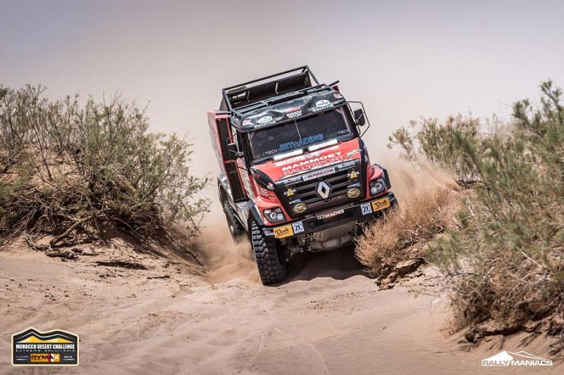 4. etapa do Fezou o délce více než tří set kilometrů byla opět mimořádně pestrá. Posádky se musely porvat s dlouhými úseky dun Chegaga i jemným fesh feshem, ale nechyběly ani tvrdé kamenité průsmyky. „Etapy jsou vážně drsné, což dokazuje stav kamionů. Hodně kamenitá a tvrdá trať jim dává pořádně zabrat. Neustále tu bojujeme s následky toho, že se někde něco utrhne. U Martina máme trochu potíže s uložením kabiny. Ta je po každé etapě pěkně zřízená. Dnes se trasa podepsala na výsledku Januse,“ poznamenal Kozlovský, když sdělil, že pilot utrhl vodní chladič a posádka neustále ztrácela vodu, kterou na trase několikrát doplňovala. V uplynulých dvou dnech se pak s utrženým kardanem potýkala i třetí posádka židovických kamionů Renault Trucks s pilotem Gertem Huzinkem z týmu Riwald Dakar.„Každý den jedeme nonstop a opravuje do rána. Stejně tak to bude i dnes. Janusovi se vařil motor, takže se vše snažíme dát dohromady. Je to tvrdé i pro nás mechaniky. Snažíme se odpočinout pak na cestách, ale klikaté serpentýny vás moc nenechají. Naštěstí tu přejezdy nejsou tak dlouhé jako na Dakaru,“ hledá drobná pozitiva roudnický mechanik.