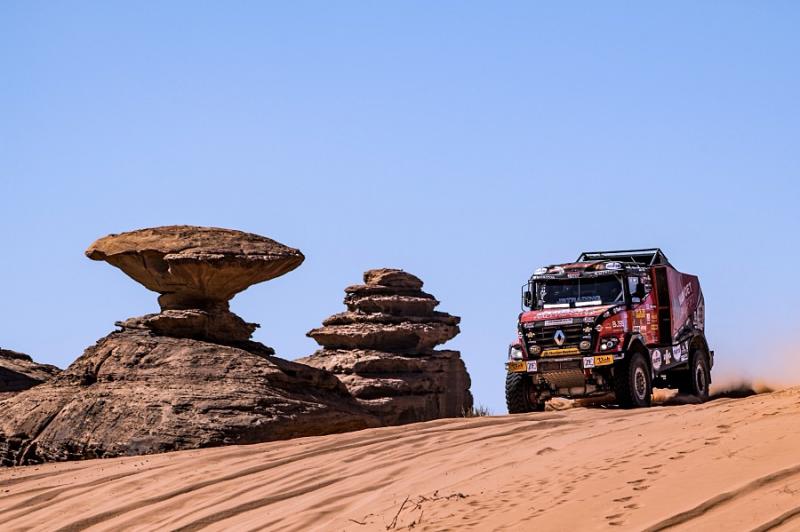 Velmi těžkou písčitou 5. etapu dokončily všechny čtyři severočeské renaulty bez ztráty kytičky. Přestože se každá posádka židovických speciálů musela prát nejen s celou řadou defektů, kamion Martina van den Brinka při nadvládě ruských kamazů nakonec dojel v sedmém nejrychlejším čase.