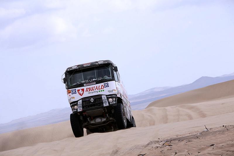 Etapa mezi San Juanem de Marcona a Arequipou měřila bezmála 800 kilometrů. Čas se závodníkům měřil na úseku dlouhém 331 km. Nejrychlejším byl tentokrát Rus Karginov před svými kolegy s kamazem druhým Sotnikovem a třetím Nikolajevem. Přestože pro mnohé favority se úterní prověrka stala takřka očistcem, židovické renaulty se udržely, přestože i druhý z kamionů z dílny týmu MKR Technology s pilotem Gertem Huzinkem musel bojovat s nástrahami trati. Nakonec cílem projel čtrnáctý. „Gert vletěl do díry a zničil nárazník a pravé přední světlo. Kluci ztratili slabou půlhodinu, pak zhruba čtvrt hodiny kvůli navigaci a následně dvacet minut při výměně pneumatiky. Po technické stránce je ale kamion v pořádku a posádka ukazuje svoji bojovnost,“sdělil Mario Kress.
