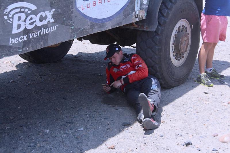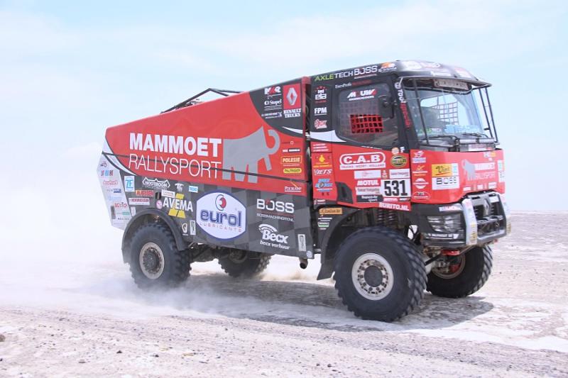 Svůj nejlepší dakarský výsledek zajel v 8. etapě pilot severočeského kamionu Renault Trucks Holanďan Janus van Kasteren. V těžké etapě dojel na šesté pozici a celkově je stále těsně za elitní desítkou, která má dvě etapy před koncem nového lídra.