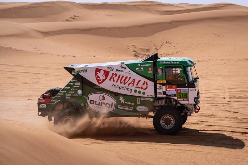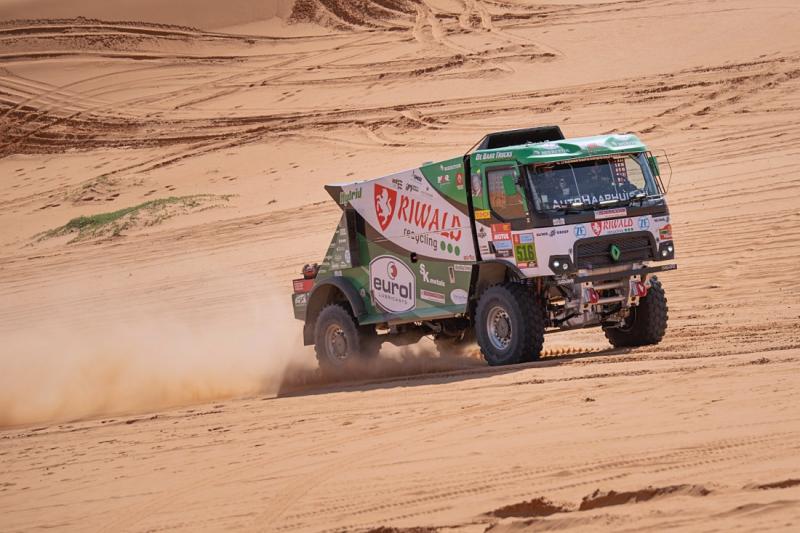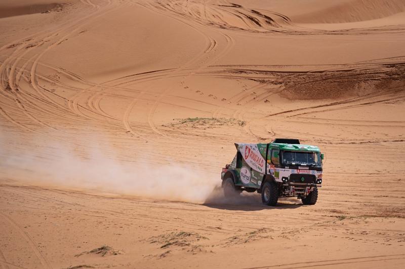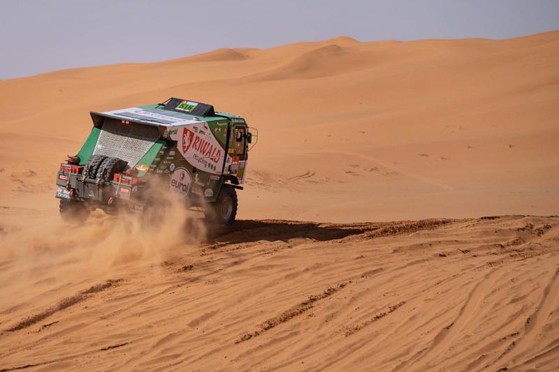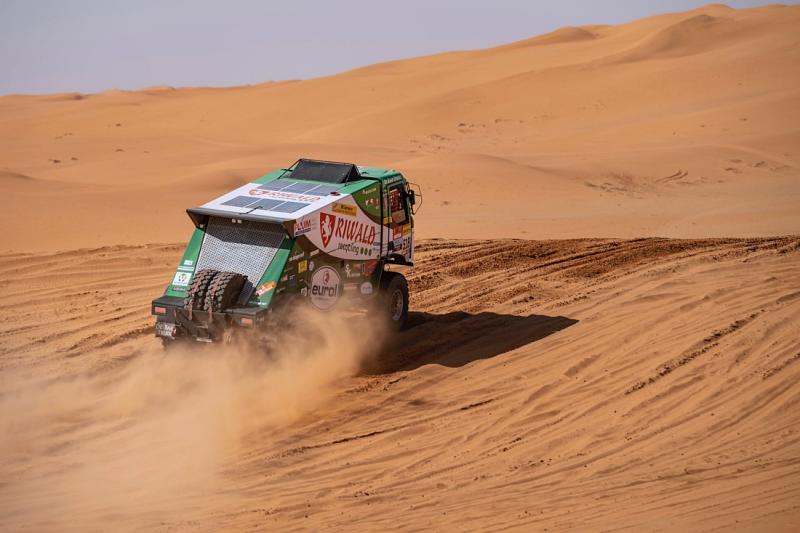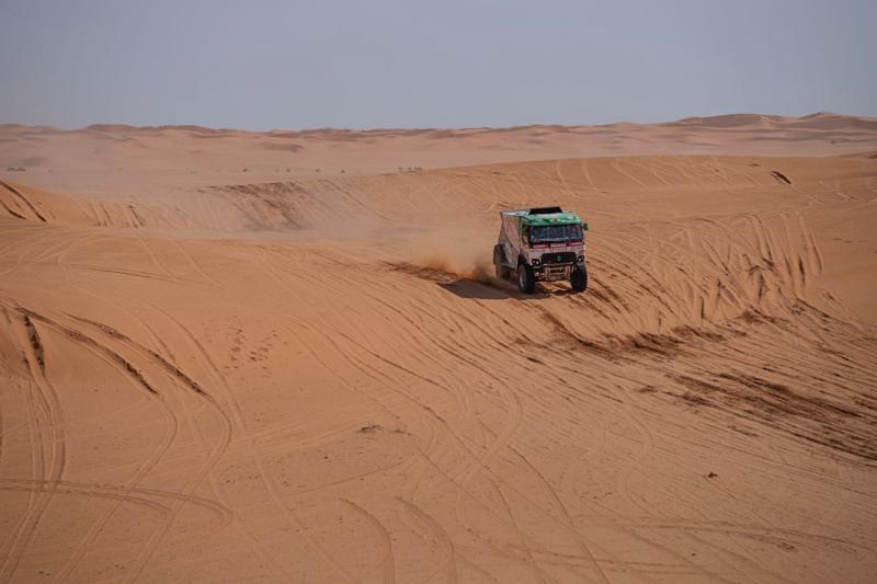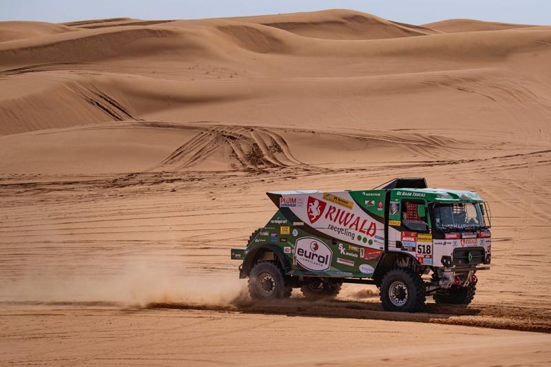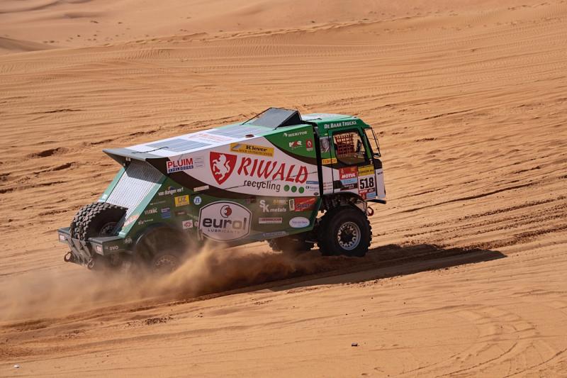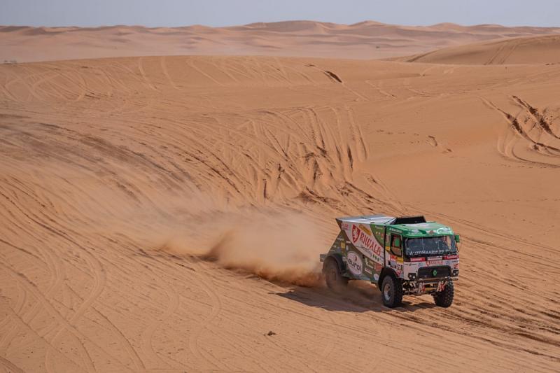 A skvěle si oba Kressovy kamiony vedly i v nedělní 7. etapě z Rijádu do Al Dawadimi. Čtyřsetkilometrovou trasu nejlépe zajel Rus Šibalov, ale Holanďan Huzink na něj ztratil na šesté příčce jen šest a půl minuty. „Byl to další velmi rychlý test. Trochu jsme ztratili v dunách a velmi obtížné bylo se na trase orientovat. Dlouho jsme jeli v prachu Lopraise, dokud neudělal chybu a my ho mohli předjet a pokračovat. Už jsme měli na dohled další, ale kvůli jednomu z waypointů jsme se museli vracet a tím jsme zase něco málo ztratili. Určitě to tedy mohlo být lepší, ale jsme v top desítce a s tím jsme velmi spokojení,“ netajil radost Gert Huzink, jehož týmový kolega Pascal de Baar naopak zvolil opatrnější styl jízdy. Nakonec z toho byla ale třináctá pozice.